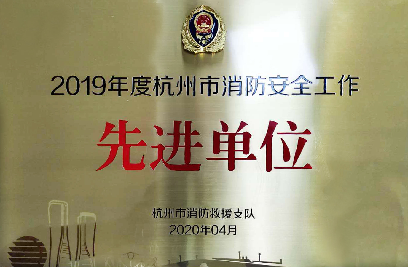 在5月14日上午召開的蕭山區消防大隊2020年度杭州市消防安全重點單位工作會議上,我公司被杭州市消防救援支隊授予“2019年度杭州市消防安全工作先進單位”稱號,安全辦高爾明同志被評為“ 2019年度杭州市消防安全管理先進個人”稱號,受到大會通報表彰。