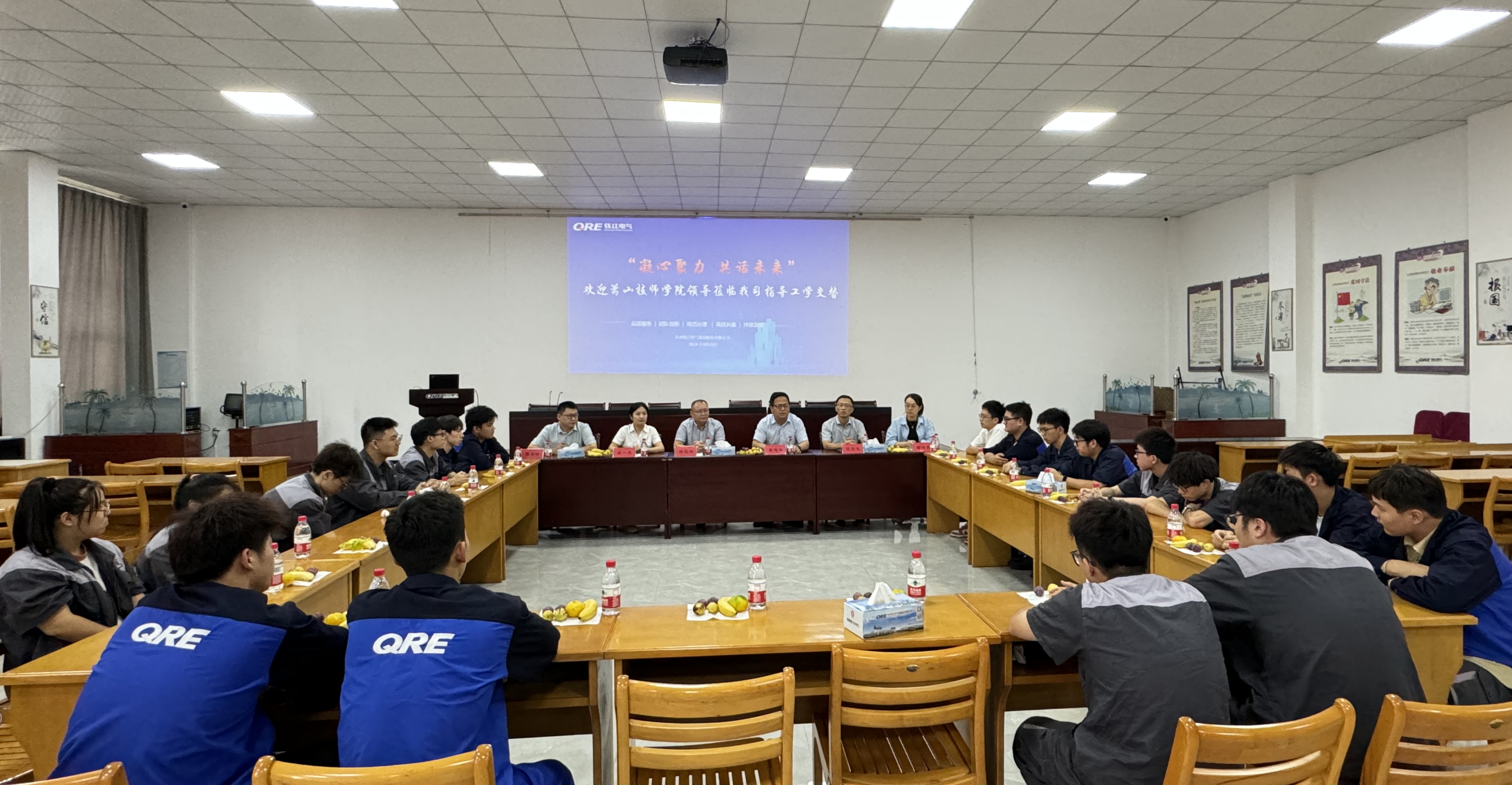9月 25日,蕭山技師學(xué)院黨委書記徐巨峰、校長魯建峰、副院長沈劍光等領(lǐng)導(dǎo)班子一行5人走訪錢江電氣,看望實(shí)習(xí)生和新入職畢業(yè)生。集團(tuán)人力資源總監(jiān)吳一慶與學(xué)院領(lǐng)導(dǎo)就高質(zhì)量開展工學(xué)交替教學(xué)活動(dòng)進(jìn)行座談交流。