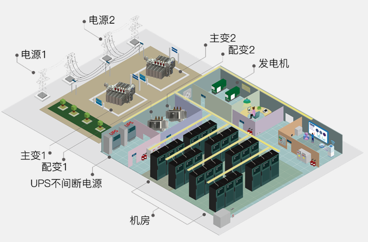 隨著大數據時代的到來,數據中心從早期的為分散式運營商、科研機構、金融機構服務的機房發展到現在的云計算、物聯網,數據中心行業得到了飛速的發展,信息和數據量呈幾何級增長,眾多行業也都在建設各種不同用途、規模、等級的數據中心,數據中心在政府機構以及電信、銀行、證券、保險、互聯網等行業中不斷地提高自己的驅動力,由此對網絡數據的安全性要求也越來越重視,為網絡數據安全性提供護航保障的電力設備其本身的安全可靠運轉、運維效率、能源效率、數字化問題等等也提出了更高的要求。